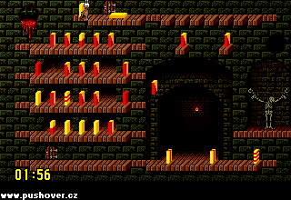 a propadli. Okamžitě, jak se mravenec sebere, spěchejte doprava pro Dynamit, který musíte posunout doleva